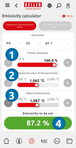 The emissivity calculator is an important tool for commissioning a pyrometer or for estimating a measurement error depending on the metrological conditions.