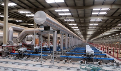 Cada planta produce 1.700 toneladas de bloques cerámicos al día. ¡Se podrían construir hasta 40 casas unifamiliares con ellas! Una comparación muestra la enorme capacidad de las fábricas: una fábrica de ladrillos alemana produce de media entre 300 y 400 toneladas de productos cocidos al día.